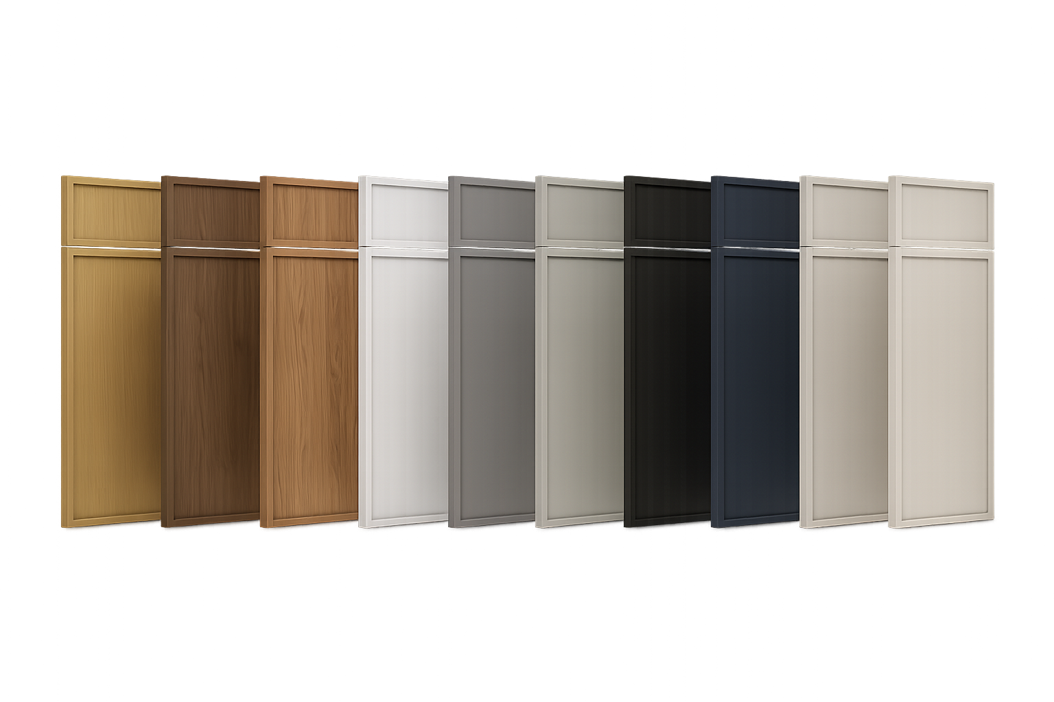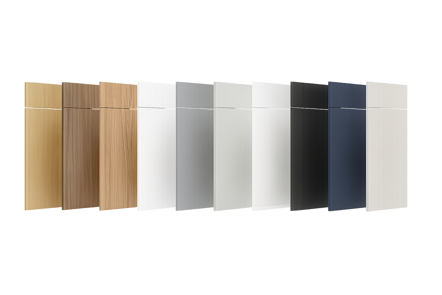 We offer a curated selection of premium laminate, paint, and high‑gloss finishes from EGGER and Lioher, with our most popular colors included in the standard offering. A variety of door‑style options is also available, allowing you to pair your preferred finish with the profile that best complements your design.